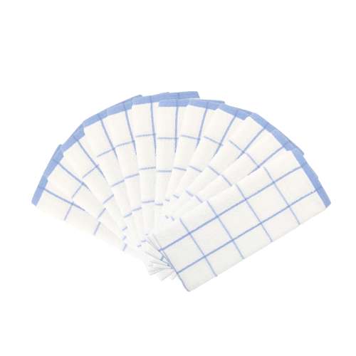 Pack: Bulk pack of 12 cotton kitchen towels have a large size ( 15 x 25 in.) and are ideal for frequent use in cooking, cleaning Quality: These dish towels are super absorbent and dry quick. Simple and elegant window pane design will match with any kitchen décor Lightweight: These terry dishcloths are a great alternative to disposable paper towels, and microfiber cloths, as these are more durable and will last longer Multi-purpose: This kitchen towel set is lint free and can be used as napkins, a cleaning cloth, for drying plates, bowls, as a tea towel set etc. Care: These dish cloths can be washed several times without wearing out. Machine Wash regular, Tumble Dry