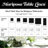 - MULTIPURPOSE: Mariposa tablecloths in sophisticated black and white will compliment any decoration and complete any event planner’s vision perfectly. Weddings, Bar/Bat Mitzvahs, graduation and retirement parties, formal and casual dining events alike — Mariposa table linens are the perfect choice.