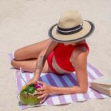 The best-selling California Cabana Towel comes in ten stripe colors and is made of soft ring spun 100% cotton for a beach towel that is sure to become a favorite. At 30x70 inches, this beach towel is bigger than most on the market. Yarn-dyed processing creates a towel that resists fading from sun damage and produces bright, vibrant colors that last years. The California Cabana collection is available in sets of four and captures the true essence of oceanfront style. Our cabana towels are designed to stay soft and colorful for years with easy care and low lint.