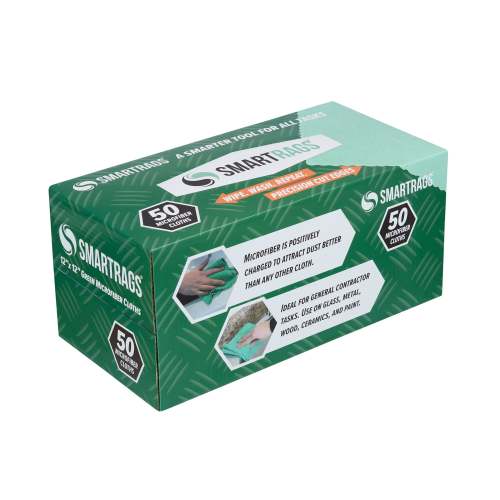 Microfiber SPECIFICATIONS: One box contains 50 microfiber cloths (12 x 12 in.) that have precision, seamless cut edges for efficient cleaning SAVINGS: These rags have been engineered and designed (center-pull dispenser box) to be conveneint and affordable. They can be reused and laundered 100s of times thus making for great savings. Don't waste money on disposable paper towels and rags. MULTIPLE ENVIRONMENTS: SmartRags are less expensive than regular microfiber cloths so are ideal for utility carts, Industrial and Automotive shops, Office environments, Corporate Supply Rooms, Healthcare facilities and households. All-PURPOSE: Suited for both, dry and wet cleaning. Removes heavy soils, grime while also giving a streak-free, lint-free polish and finish. CARE INSTRUCTIONS: Machine wash cold, air dry for best results (or tumble dry low). Do not use bleach.