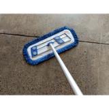 Fringed microfiber dust mops with hook and loop backing make daily dusting more efficient and effective. The unique microfiber yarn attracts and traps dust and fine particles better than traditional materials, while the secure hook and loop system ensures quick attachment and removal from the frame. This 18” dust mop is ideal for janitorial professionals, as it fits in smaller areas for effective cleaning. Blue is preferred for cleaning hard surface floors in hallways, gymnasiums, food courts, and common areas, when used for color-coded cleaning systems.