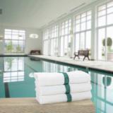 POWER GYM BATH TOWEL: Arkwright's quick-drying bath towel collection is made of 100% cotton. These top-rated small light bathroom towels were initially designed as commercial gym bath towels, and are popular hotel pool towels. Complete your towel set with our power bath towels for the bathroom. POWER GYM BATH TOWEL VALUE PACKS: Pick up an economy set of 12 white 22" x 44" gym towels with a color center stripe. Our highly absorbent quick drying bath towels are available in plain white and blue, beige, pink, green, gold, and grey stripe. A BETTER BATH TOWEL DESIGN: Arkwright's Power bath towels are made from virgin fiber 12/S open-end yarn. Standard absorbent gym towels are made from inferior blended (virgin & reclaimed) fiber yarn. There's a visible difference in the structure of our white bath towels. Power gym towel's loop pile is low, uniform, and tight, with more loops-per-square-inch than competitive towels. MULTI-PURPOSE BATH TOWEL: Our Arkwright's white quick dry towel makes a terrific gym bathroom towel, VRBO guest bath towel, or hotel pool towel. Use as an oversized hand towel in powder rooms, or to dry hair as salon towels. CARING FOR YOUR POWER BATHROOM & GYM TOWEL: These white power bath towels are machine washable on gentle cycle. Do not use bleach. Tumble dry low. Do not iron. Our soft, lightweight gym towels are easy to wash and can hold up to multiple washes without thinning or unraveling.