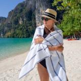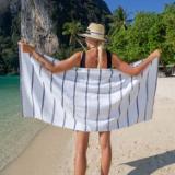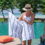 - PREMIUM QUALITY BEACH TOWELS: Our Las Rayas white plush towels are made from 100% ring spun cotton and feature beautiful flat-woven horizontal stripes.