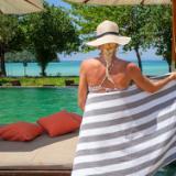 OVERSIZED POOL TOWEL: Generously sized at 30 x 70 inches, this large beach towel features an oversized surface area for drying. Enjoy the tropical island ambiance with our most popular beach towel, the California Cabana Towel. A perfect fit for any pool c