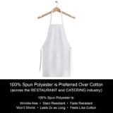 - FEATURES: Our spun poly aprons look neat and have a large surface area to cover you from spills, splashes and stains. Bib aprons have hemmed edges for toughness and durability. Elastic string and adjustable ties make it fit for any body type and is comfortable to use.