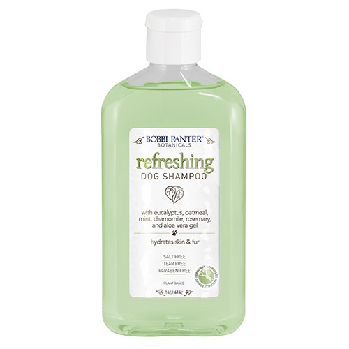 Bobbi Panter® Refreshing Dog Shampoo is infused with naturally derived ingredients, including eucalyptus oil and chamomile. This hydrating, pH-balanced formula soothes skin, reduces itching, and minimizes dander. Its eucalyptus mint scent leaves your pet feeling vibrant and energetic. Salt-free, paraben-free, and trusted by professional groomers, this concentrated shampoo is economical and proudly made in the USA.